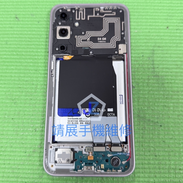 既然我們檢測出三星 Samsung Galaxy A35 5G手機確實無法進行充電,那麼我們只能拆解它來進一步的檢測手機無法充電的問題,拆解手機的背面保護板後,可以看的出三星 Samaung Galaxy A35 5G 手機的內部結構是三段式結構,而手機的充電孔置於手機的最底部。